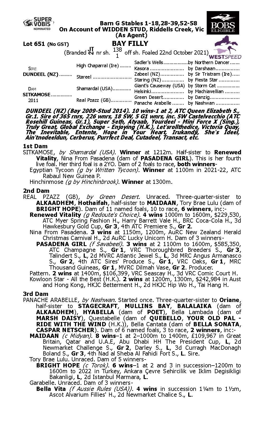 Principal Dealer 4 Year Old Bay Filly ProfilePedigree Sire: Dundeel Colour: Bay Dam: Sitkamose Sex: Filly Age: 4 Foaled: Oct 22, 2021 Country: Australia Trainer: N D Parnham Silks: Incentives: Owners: N D Parnham, Mrs C A Parnham, R C Pearson, G L McRostie, M J Fagan, L Baker, B E Bradshaw & P J Evans Career: 5: 0 - 0 - 0 Wins: 0.0%Place: 0.0% Prizemoney:$2,250.00